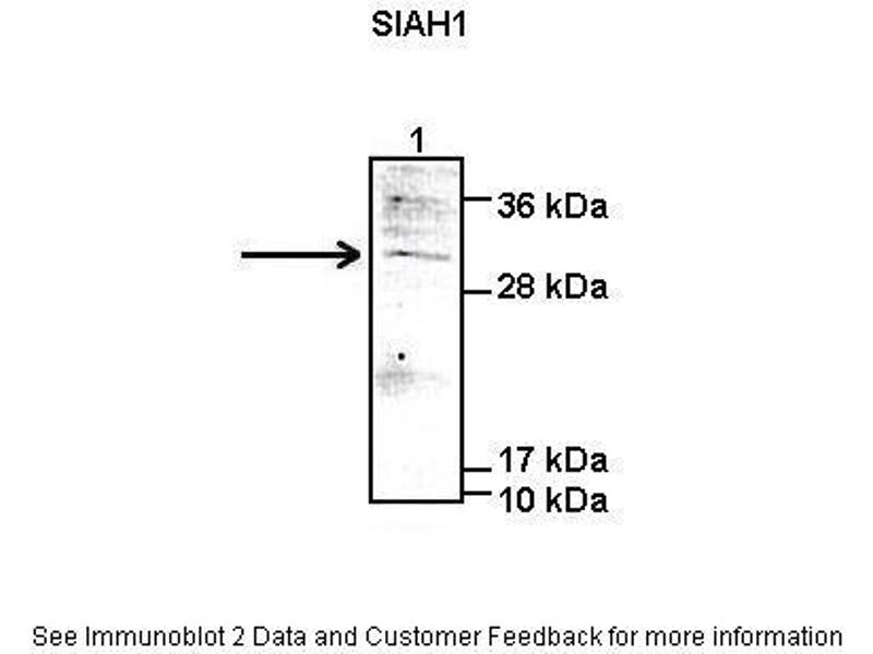 - This is a rabbit polyclonal antibody against SIAH1. It was validated on Western Blot using a cell lysate as a positive control.