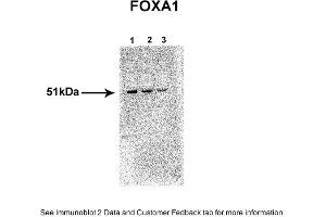 - The immunogen is a synthetic peptide directed towards the N terminal region of human FOXA1