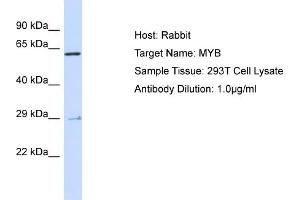 This gene encodes a transcription factor that is a member of the MYB family of transcription factor genes. The protein contains three domains, an N-terminal DNA-binding domain, a central transcriptional activation domain and a C-terminal domain involved in transcriptional repression. This protein plays an essential role in the regulation of hematopoiesis and may play a role in tumorigenesis. Alternative splicing results in multiple transcript variants. Protein Interaction Partner: UBC, ERC2, UPF2, PPM1K, MYOZ2, SUMO1, SUMO2, CCND3, EP300, RBX1, FBXW5, PIAS1, CUL4A, UBE2I, DDB1, TRAF6, STAT5A, GATA3, KAT5, Fbxw7, CREBBP, LEF1, RPL4, KAT2B, CHD3, SIN3A, TRIM28, NCOR1, SKI, HIPK2, NLK, SP100, HLF, PARP1, ASH2L, RBBP5, KMT2A, MEN1, WDR Protein Size: 555
