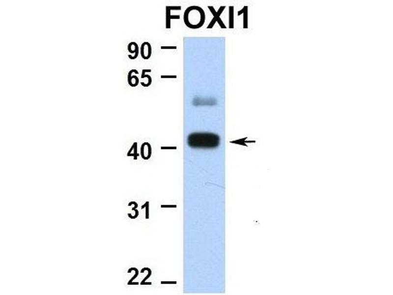 - This is a rabbit polyclonal antibody against FOXI1. It was validated on Western Blot using a cell lysate as a positive control.