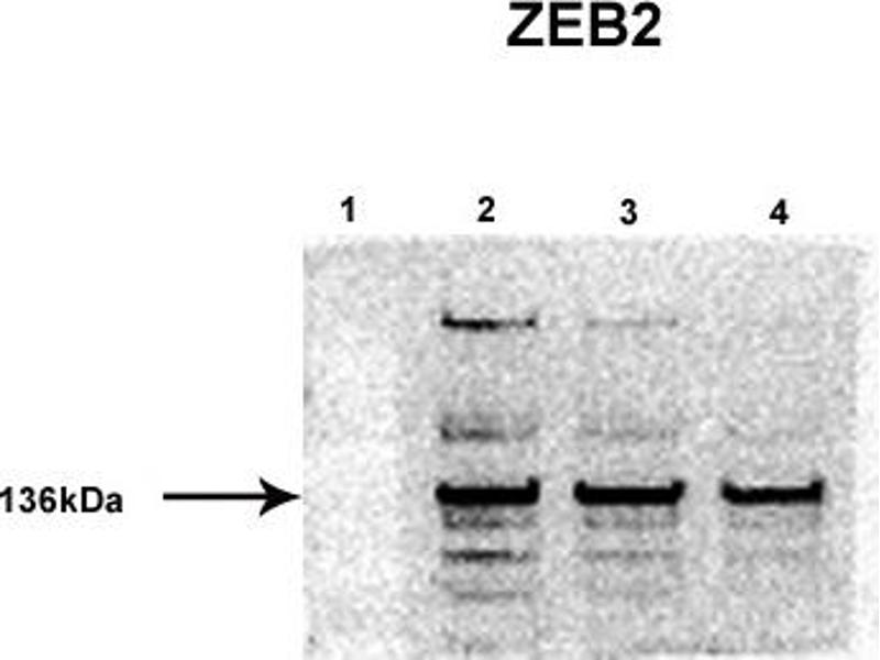 - This is a rabbit polyclonal antibody against ZEB2. It was validated on Western Blot using a cell lysate as a positive control.