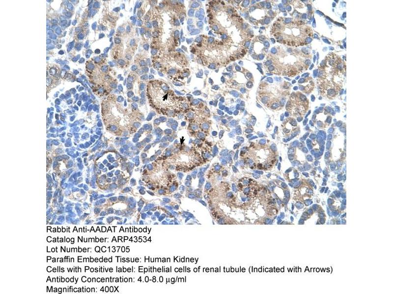 - The immunogen is a synthetic peptide directed towards the N terminal region of human AADAT