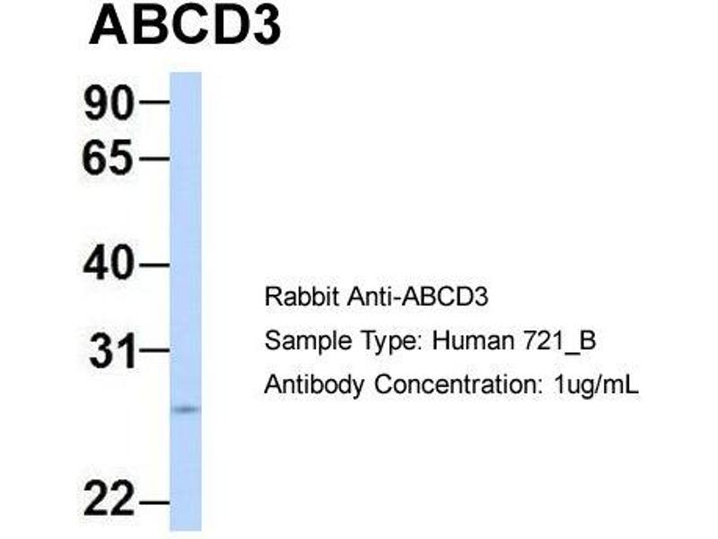 - This is a rabbit polyclonal antibody against ABCD3. It was validated on Western Blot using a cell lysate as a positive control.
