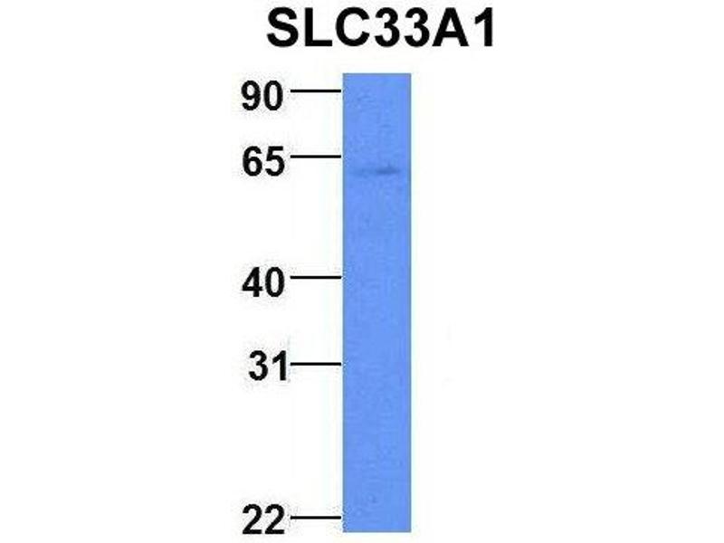 - This is a rabbit polyclonal antibody against SLC33A1. It was validated on Western Blot using a cell lysate as a positive control.