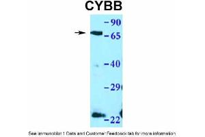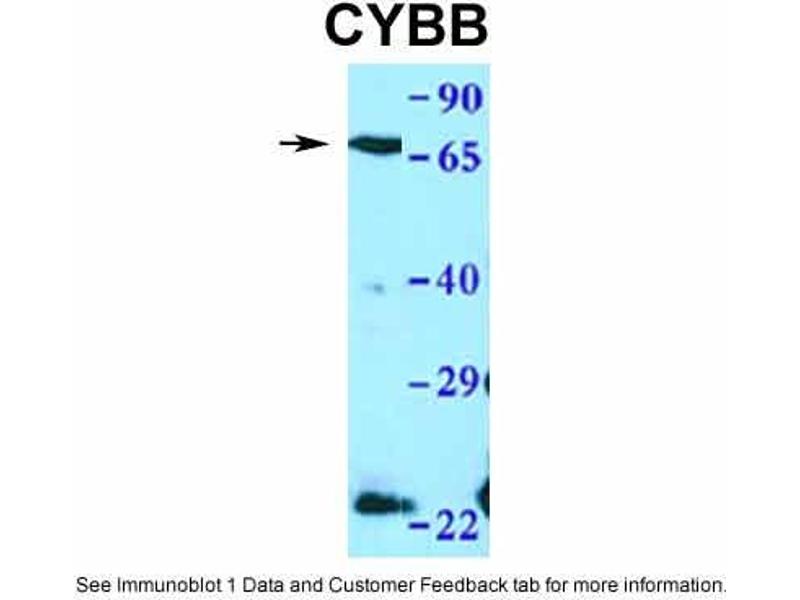 - This is a rabbit polyclonal antibody against CYBB. It was validated on Western Blot using a cell lysate as a positive control.
