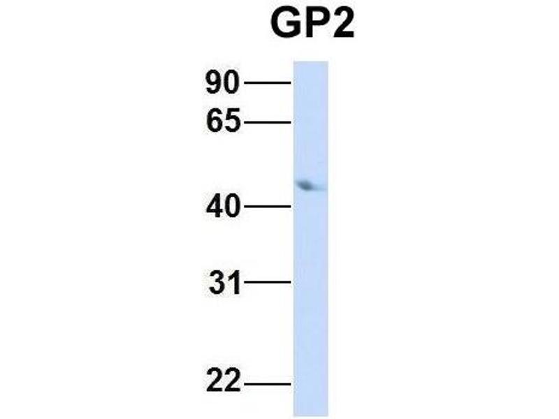 - This is a rabbit polyclonal antibody against GP2. It was validated on Western Blot using a cell lysate as a positive control.