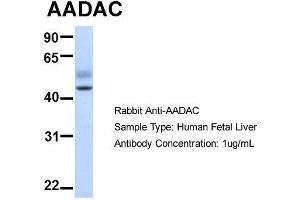 - This is a rabbit polyclonal antibody against AADAC. It was validated on Western Blot using a cell lysate as a positive control.