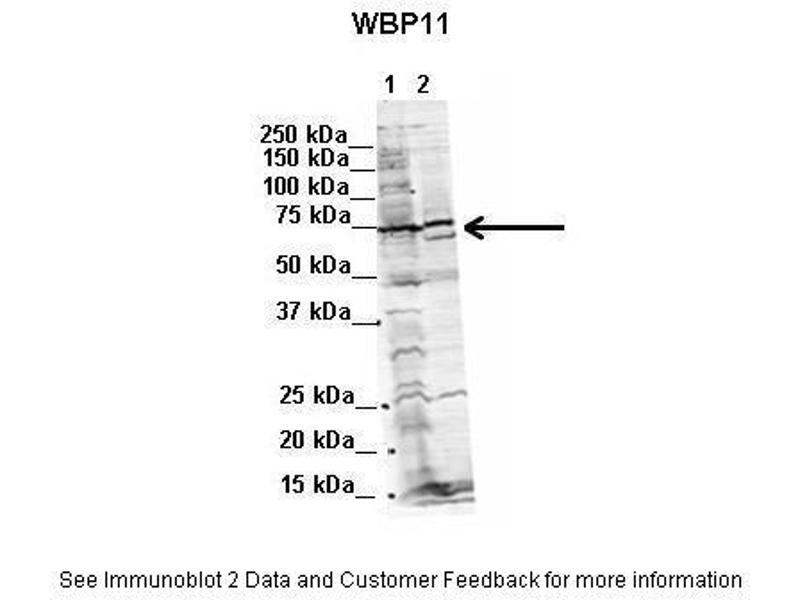 - This is a rabbit polyclonal antibody against WBP11. It was validated on Western Blot using a cell lysate as a positive control.