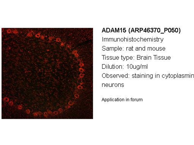 - The immunogen is a synthetic peptide directed towards the middle region of human ADAM15