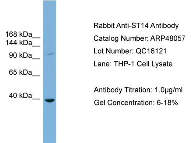 - This is a rabbit polyclonal antibody against ST14. It was validated on Western Blot.