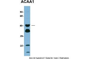 - This is a rabbit polyclonal antibody against ACAA1. It was validated on Western Blot using a cell lysate as a positive control.