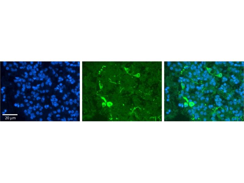 - Liquid. Purified antibody supplied in 1x PBS buffer with 0.09 % (w/v) sodium azide and 2 % sucrose.