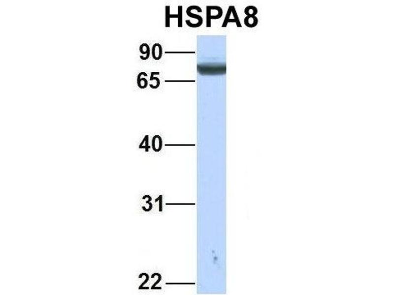 - The immunogen is a synthetic peptide directed towards the N terminal region of human HSPA8