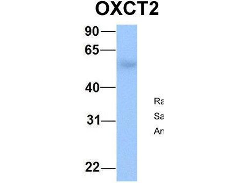 - This is a rabbit polyclonal antibody against OXCT2. It was validated on Western Blot using a cell lysate as a positive control.
