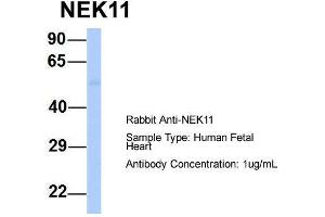 - This is a rabbit polyclonal antibody against NEK11. It was validated on Western Blot using a cell lysate as a positive control.