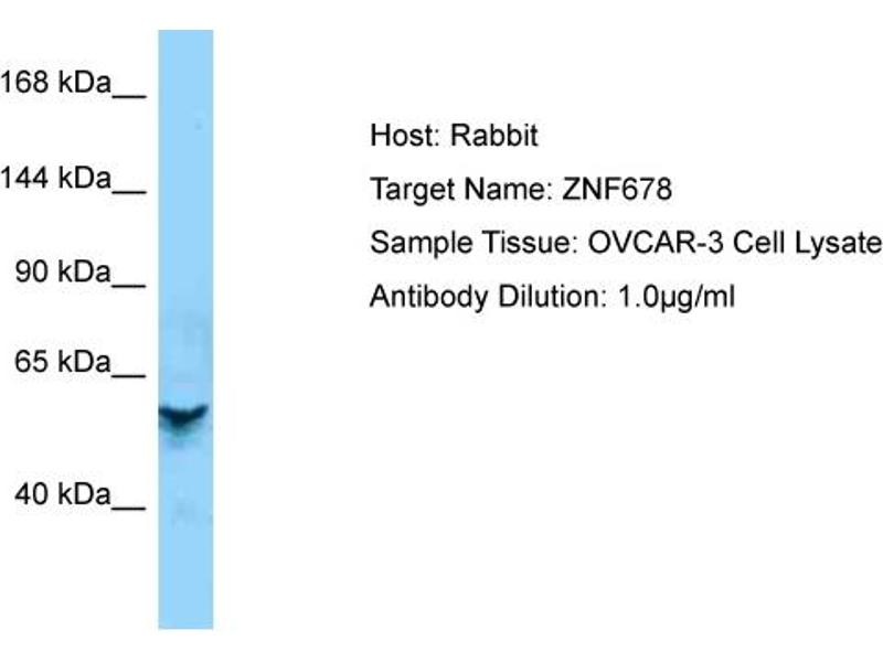 This is a rabbit polyclonal antibody against ZNF678. It was validated on Western Blot.