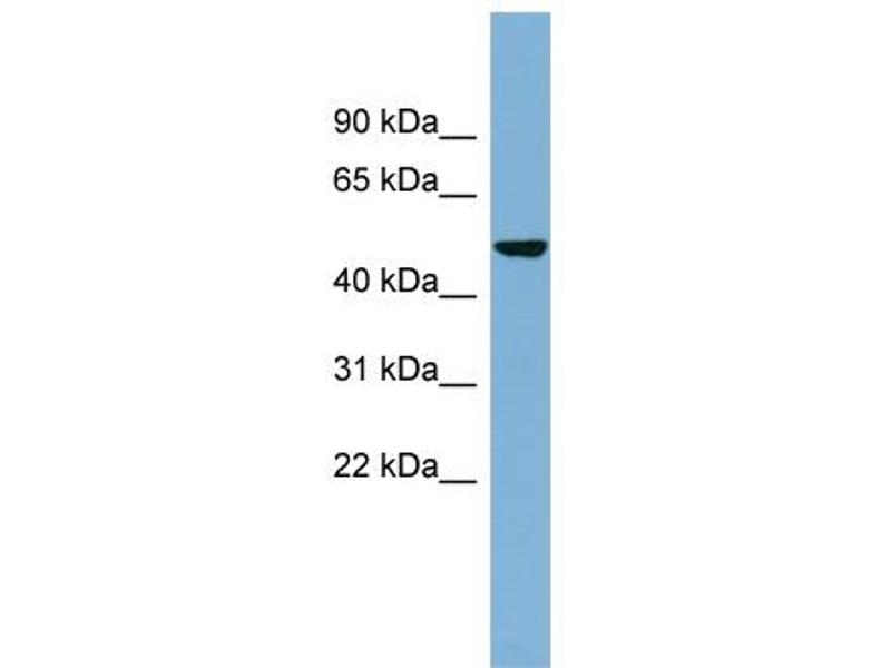 This is a rabbit polyclonal antibody against SMYD1. It was validated on Western Blot using a cell lysate as a positive control.