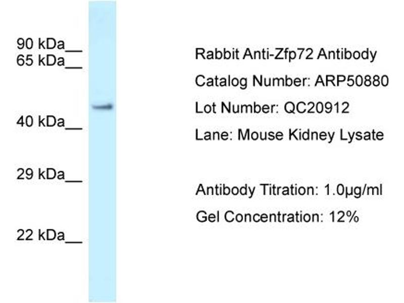- This is a rabbit polyclonal antibody against Zfp72. It was validated on Western Blot.