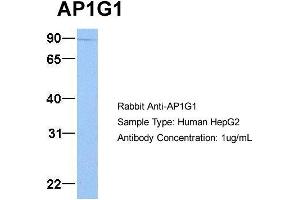 - This is a rabbit polyclonal antibody against AP1G1. It was validated on Western Blot using a cell lysate as a positive control.