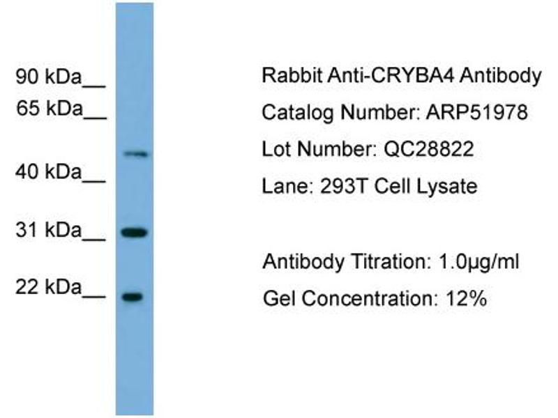 - This is a rabbit polyclonal antibody against CRYBA4. It was validated on Western Blot.