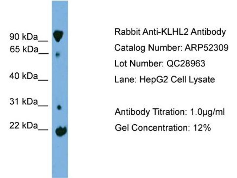 - This is a rabbit polyclonal antibody against KLHL2. It was validated on Western Blot using a cell lysate as a positive control.