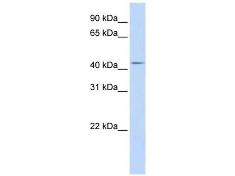 - The immunogen is a synthetic peptide directed towards the middle region of human DENND1B
