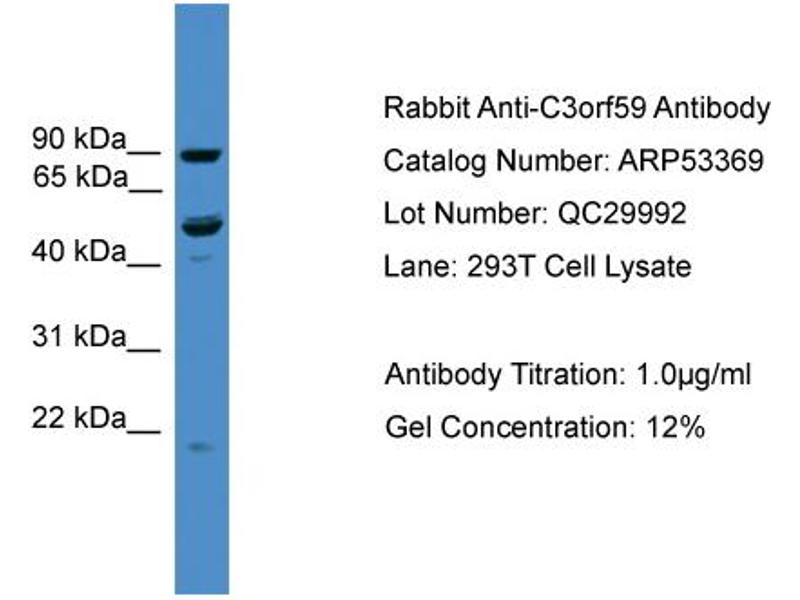 - This is a rabbit polyclonal antibody against C3orf59. It was validated on Western Blot.