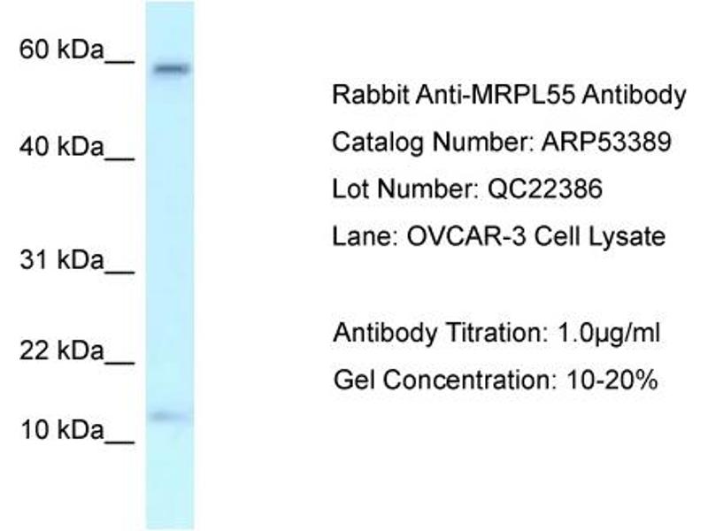 - This is a rabbit polyclonal antibody against MRPL55. It was validated on Western Blot.