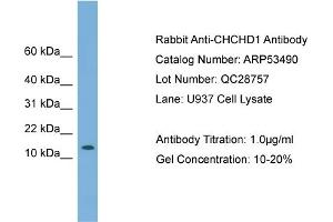 - This is a rabbit polyclonal antibody against CHCHD1. It was validated on Western Blot using a cell lysate as a positive control.