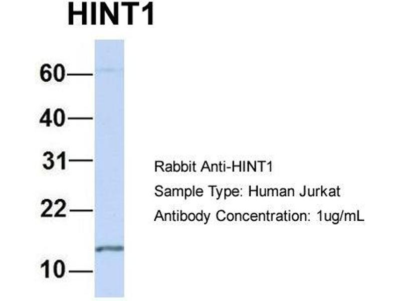 This is a rabbit polyclonal antibody against HINT1. It was validated on Western Blot using a cell lysate as a positive control.