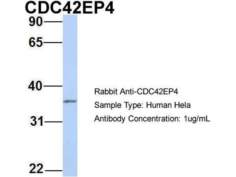 - This is a rabbit polyclonal antibody against CDC42EP4. It was validated on Western Blot using a cell lysate as a positive control.