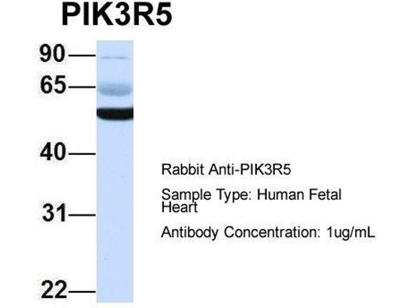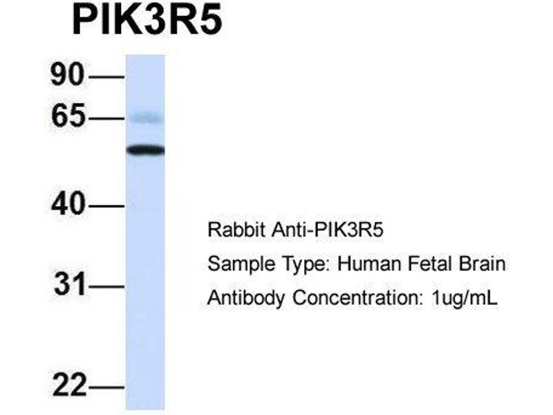 This is a rabbit polyclonal antibody against PIK3R5. It was validated on Western Blot using a cell lysate as a positive control.