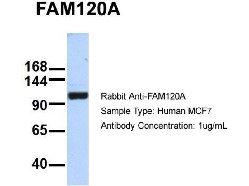 - This is a rabbit polyclonal antibody against FAM120A. It was validated on Western Blot using a cell lysate as a positive control.