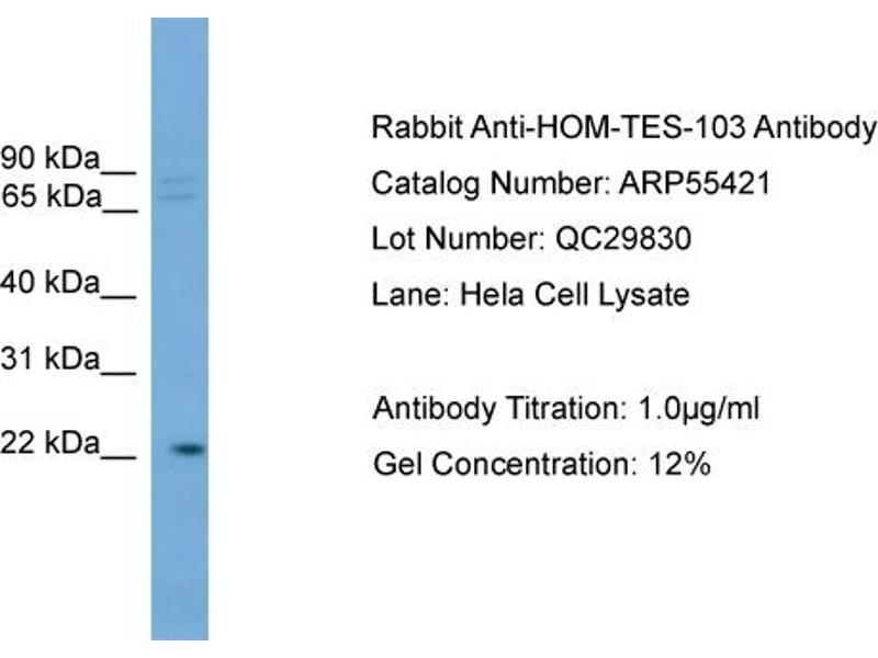 - This is a rabbit polyclonal antibody against HOM-TES-103. It was validated on Western Blot.