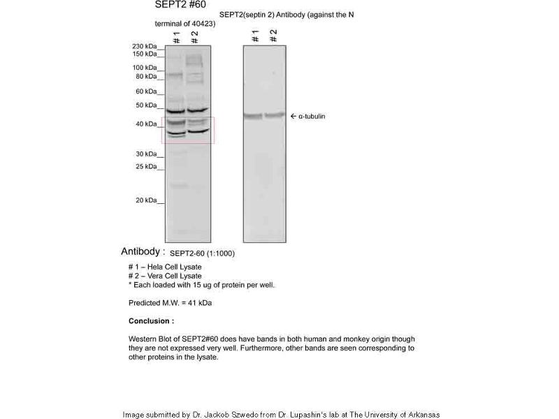 - The immunogen is a synthetic peptide directed towards the N terminal region of human SEPT2