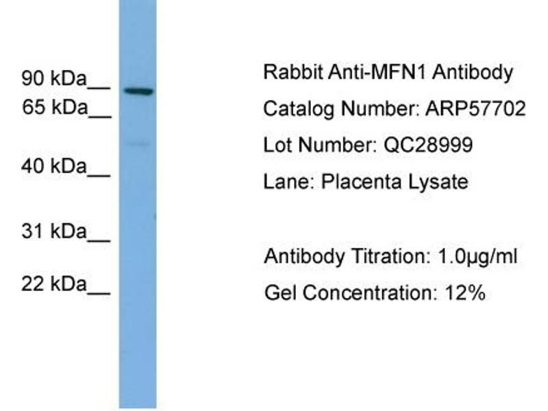 - This is a rabbit polyclonal antibody against MFN1. It was validated on Western Blot using a cell lysate as a positive control.