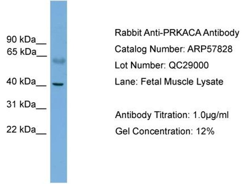 - This is a rabbit polyclonal antibody against PRKACA. It was validated on Western Blot using a cell lysate as a positive control.