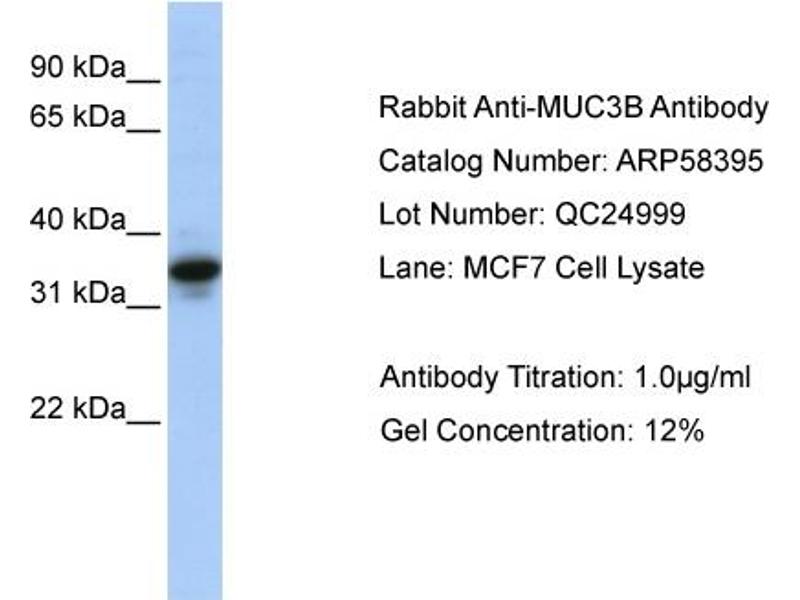 - This is a rabbit polyclonal antibody against MUC3B. It was validated on Western Blot using a cell lysate as a positive control.
