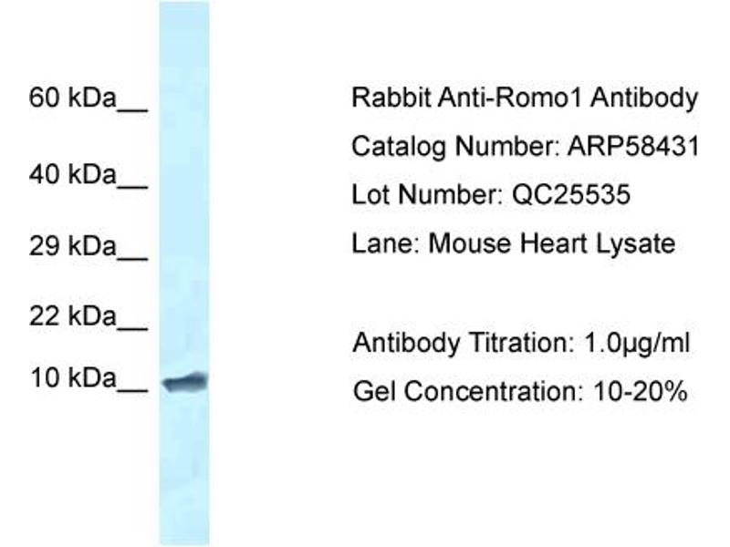 - This is a rabbit polyclonal antibody against Romo1. It was validated on Western Blot.