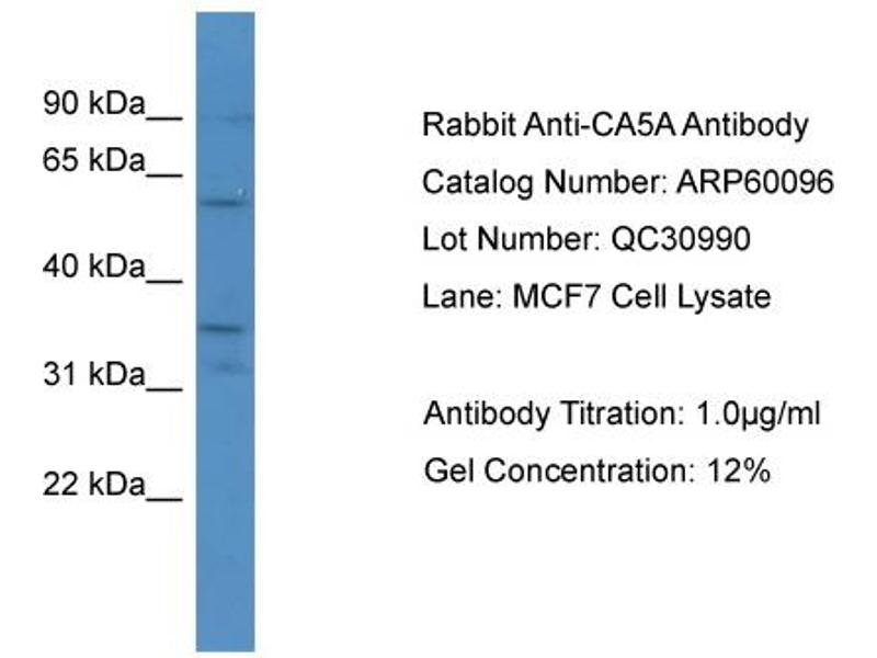 - This is a rabbit polyclonal antibody against CA5A. It was validated on Western Blot.