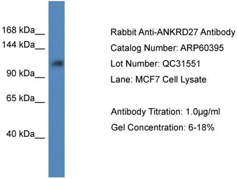 - This is a rabbit polyclonal antibody against ANKRD27. It was validated on Western Blot.