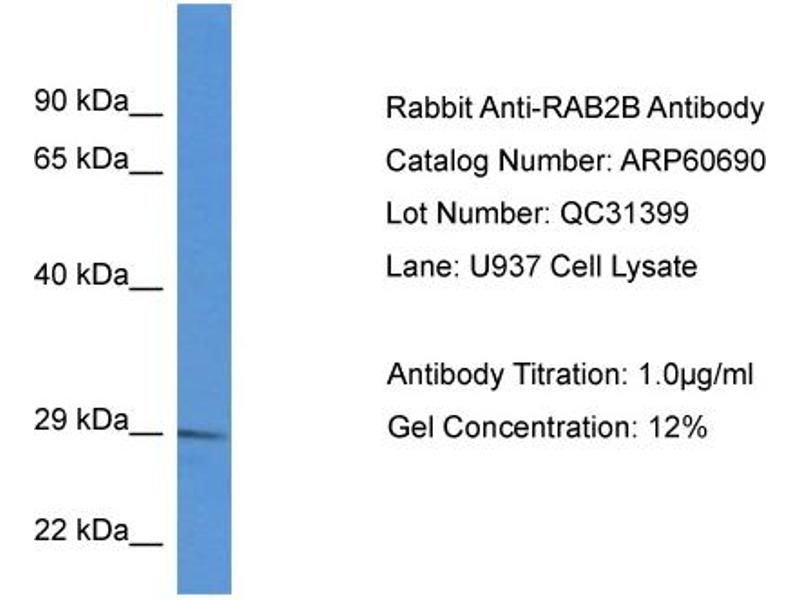 This is a rabbit polyclonal antibody against RAB2B. It was validated on Western Blot.