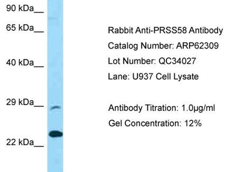 - This is a rabbit polyclonal antibody against PRSS58. It was validated on Western Blot.
