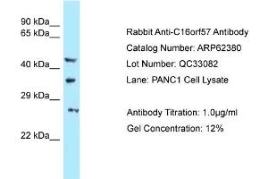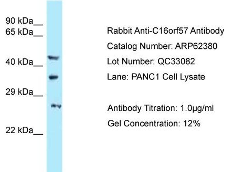 - This is a rabbit polyclonal antibody against C16orf57. It was validated on Western Blot.