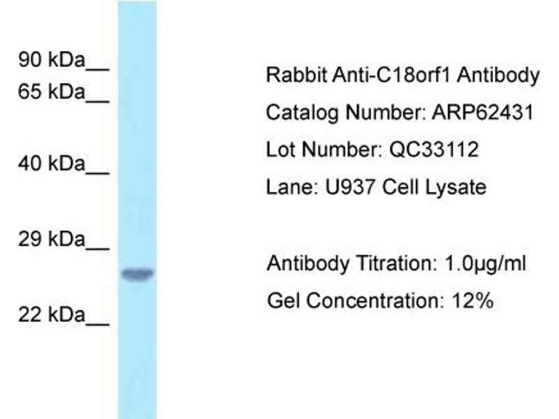 - This is a rabbit polyclonal antibody against C18orf1. It was validated on Western Blot.