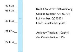 - This is a rabbit polyclonal antibody against TBC1D20. It was validated on Western Blot.
