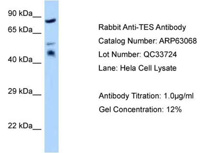 - This is a rabbit polyclonal antibody against TES. It was validated on Western Blot.