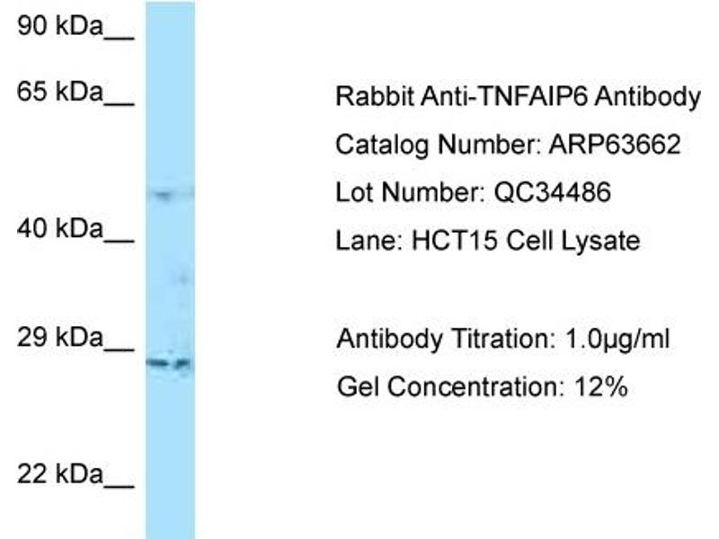 This is a rabbit polyclonal antibody against TNFAIP6. It was validated on Western Blot.