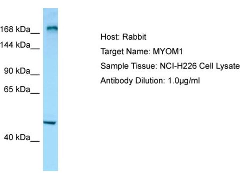 - This is a rabbit polyclonal antibody against MYOM1. It was validated on Western Blot.