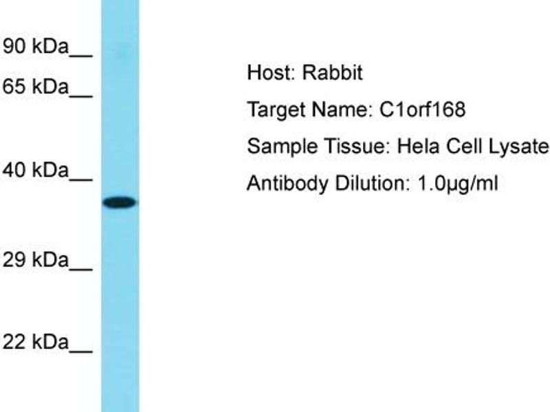 This is a rabbit polyclonal antibody against C1orf168. It was validated on Western Blot.